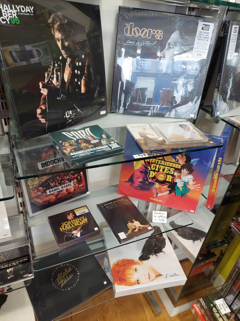 À cette occasion, nous avons sorti une partie de la boutique sur le trottoir : une belle sélection de vinyles d’occasion a pris l’air, accompagnée de notre tourniquet de cartes postales et de petits goodies qui a fait tourner bien des têtes. 😄